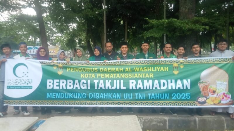 Dalam semangat kebersamaan di bulan suci Ramadhan, Pengurus Daerah Al-Washliyah Kota Pematang Siantar menggelar kegiatan sosial dengan membagikan takjil kepada masyarakat, Kamis (27/3).