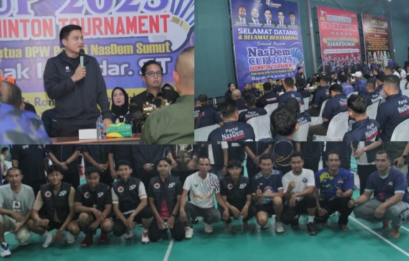 Wali Kota Medan Rico Tri Putra Bayu Waas bersama Pimpinan DPRD Sumut Ricky Anthony resmi membuka NasDem Cup 2025 Badminton Tournament Piala Ketua DPW Partai NasDem Sumatera Utara, Jumat (7/11/2025).