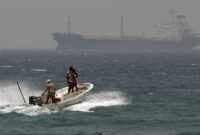 foto : Sebuah kapal nirawak L3 Harris Arabian Fox MAST-13 milik Angkatan Laut AS dan kapal pemotong USCGC John Scheuerman milik Penjaga Pantai AS…
